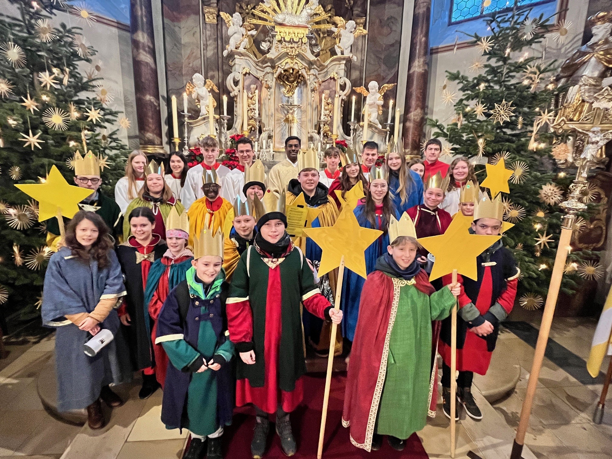 Nach dem Schlussgebet wurden die Kreide, Segensaufkleber und die Sternsinger gesegnet. Der stimmungsvolle Abschluss der Eucharistiefeier erfolgte, als Kaplan Savariraj die Sternsinger mit ihrem Segen aussandte – eine symbolträchtige Handlung, die die Weisen aus dem Morgenland, Kaspar, Melchior und Balthasar, in Erinnerung rief. Kaplan Napoleon bedankte sich herzlich bei den Sternsingern für ihre engagierte Mitwirkung und wünschte ihnen einen erfüllten Tag. Damit endete der Gottesdienst nicht nur als Appell, die Freude des Evangeliums und die Frohe Botschaft aktiv in die Straßen zu tragen, sondern auch als Zeichen der Solidarität mit bedürftigen Kindern in Amazonien und weltweit.