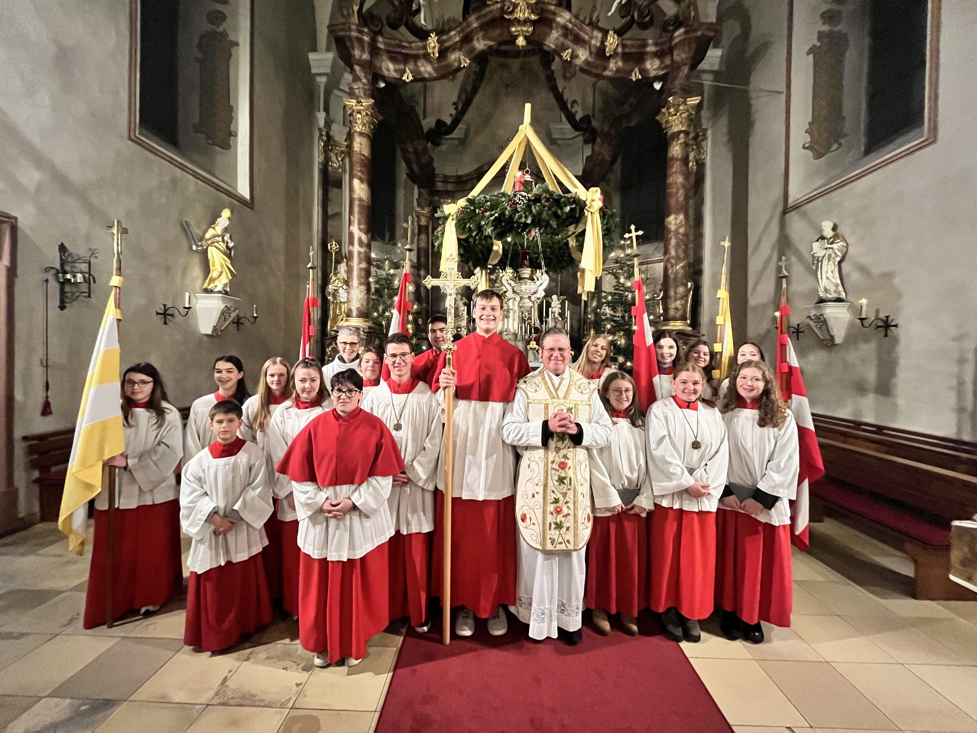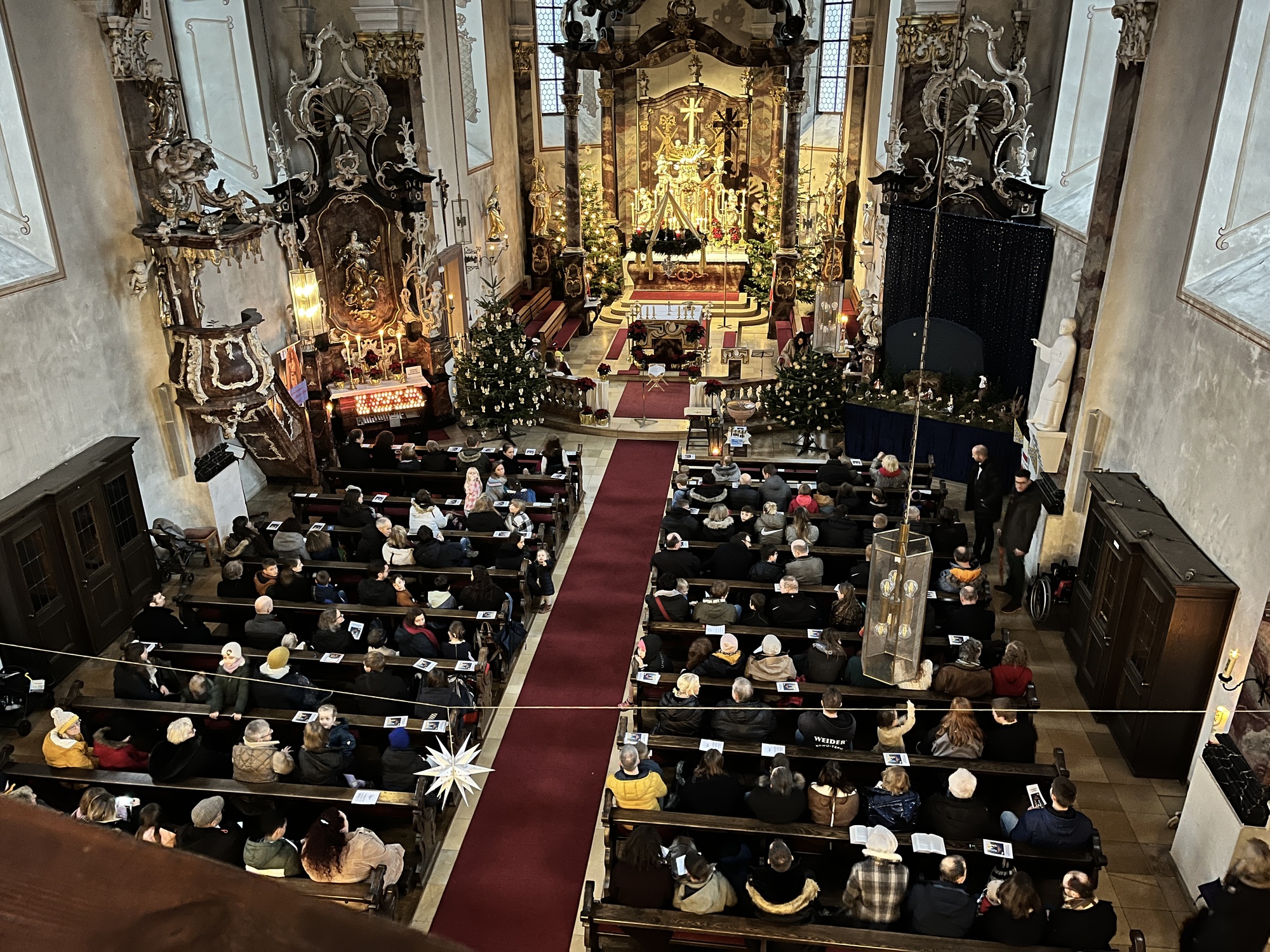 Mit festlichem Glanz und in einer Atmosphäre der Besinnlichkeit wurde die feierliche Christmette in der Pfarrkirche St. Justinus zelebriert. Das Gotteshaus erstrahlte in liebevoller Dekoration, eingehüllt in den Zauber der Weihnacht, als Stadtpfarrer Frank Mathiowetz die Geburt Christi mit der Gemeinde feierte. Die Kirche war bis auf den letzten Platz gefüllt und die festliche Stimmung durchdrang jeden Winkel.