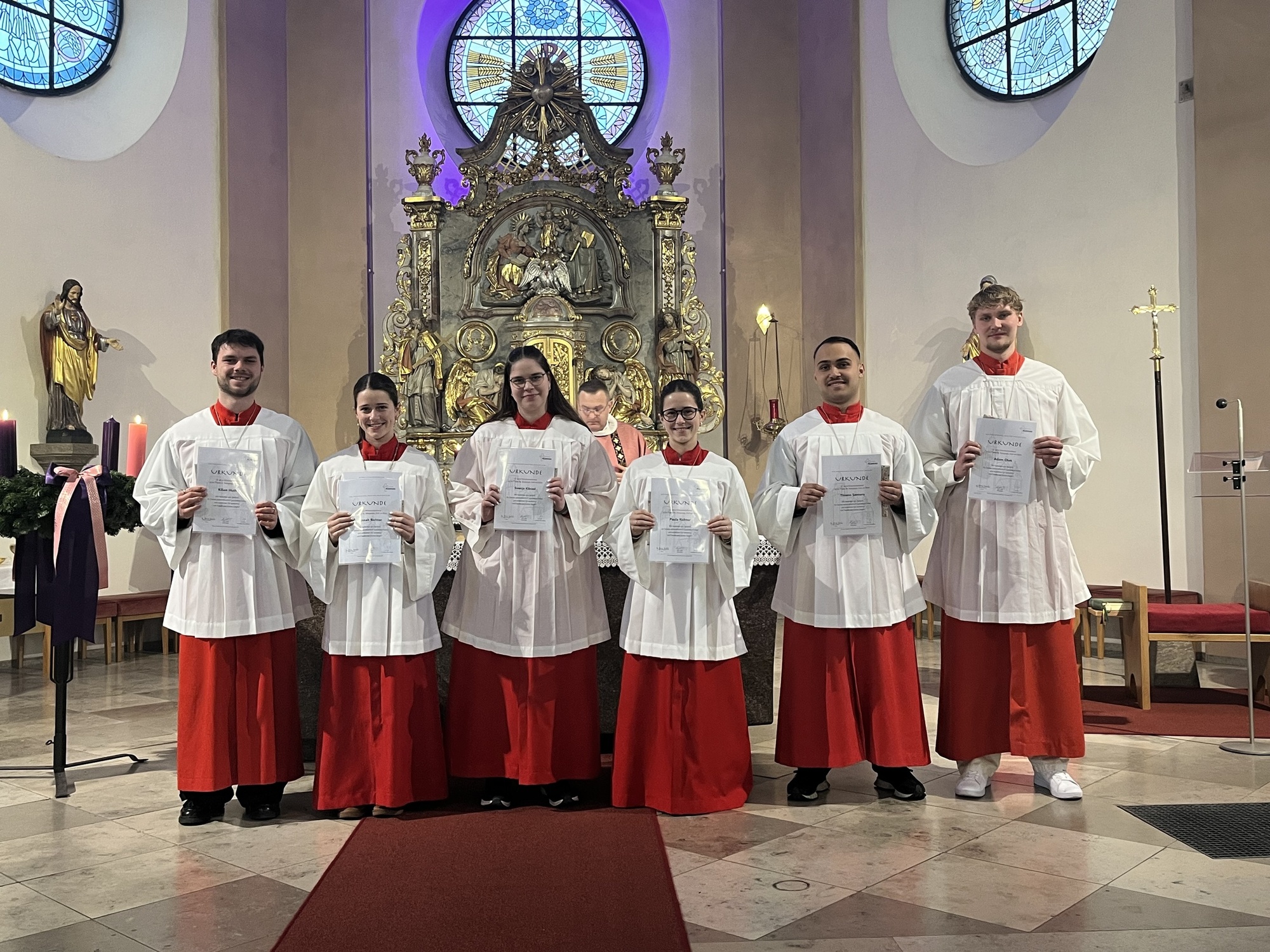 Neben geteilter Glaubensfreude war die Einführung von fünf neuen Kommunionhelfern, die sich fortan in den Dienst am Altar stellen lassen, Anlass, sich gemeinsam an einem starken Ehrenamt zu freuen. Ein weiterer essenzieller Baustein der Liturgie ist der Dienst der Ministranten, die von Pfr. Mariusz Kowalski für ihr gelebtes Glaubenszeugnis geehrt wurden. Den Dank für ihr Engagement in der Weitergabe von Ministrantenwissen an die Jüngeren und für langjährige Dienste in der Pfarrei unterstützte die Gemeinde mit kräftigem Applaus.