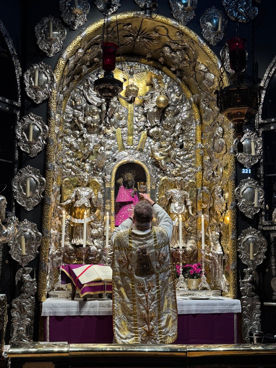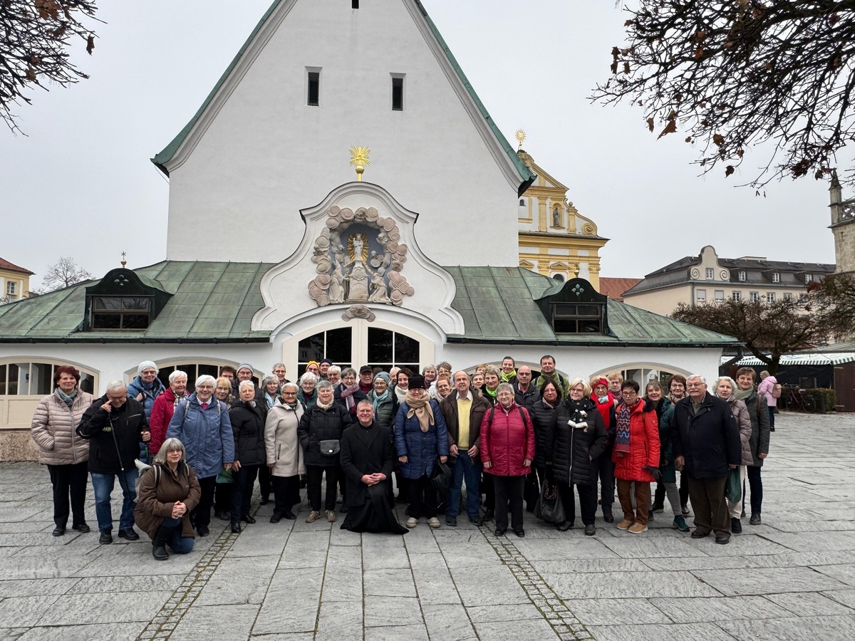 Am folgenden Morgen feierte die Gruppe in der Gnadenkapelle die Heilige Messe, für viele ein besonderer Höhepunkt der Wallfahrt. Pfarrer Mathiowetz rückte in seiner Predigt den Glauben Mariens in den Mittelpunkt und betonte, sie könne allen ein Vorbild sein, täglich neu ihr „Ja“ zum Willen Gottes zu sprechen. „Wer zu Maria geht, den führt sie zu Jesus, der Weg, Wahrheit und Leben ist“, sagte der Seelsorger. Nach der Segnung der Andachtsgegenstände verabschiedete sich die Gruppe vom Gnadenort. Ein letzter Spaziergang über den Adventsmarkt am Kapellplatz bildete den Abschluss des Aufenthalts.