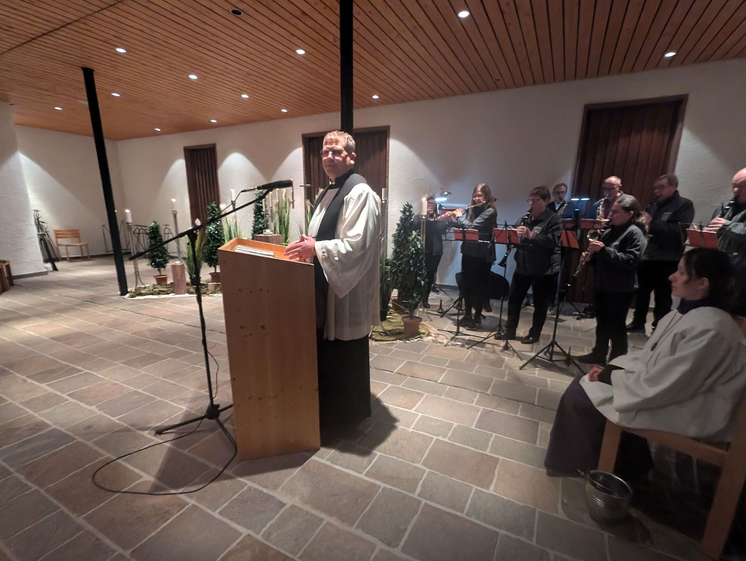 Der Friedhofsgang begann mit einer Andacht um 17 Uhr, welche in diesem Jahr von Pfarrer Frank Mathiowetz gehalten wurde. Seine Predigt hatte das Thema "Auferstehung ist unser Glaube, Wiedersehen unsere Hoffnung, Gedenken unsere Liebe" Dieses Zitat stammt vom Heiligen Augustinus. In den Fürbitten, Gebeten und biblischen Lesungen sowie persönlichen Worten begleitete der Geistliche die Gläubigen in der Friedhofskapelle und an den Gräbern durch das Gedenken der Verstorbenen, wertschätzte die Trauer, Gefühle und Verbundenheit mit den Verstorbenen und machte Hoffnung durch den Glauben an die Auferstehung.
