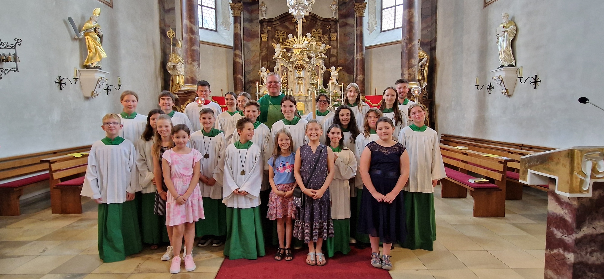 Anlässlich der Internationalen Ministrantenwallfahrt nach Rom fand in der Stadtpfarrkirche St. Justinus ein Aussendungsgottesdienst statt. Die feierliche Messe wurde von den Ministranten aktiv mitgestaltet. Dabei wurde das Motto aus dem Buch Jesaja, "Ich bin mit dir", vorgestellt. Die Wallfahrt findet vom 29. Juli bis zum 2. August 2024 statt, mit dem Höhepunkt einer Sonderaudienz mit Papst Franziskus auf dem Petersplatz. In seiner Predigt sprach Stadtpfarrer Frank Mathiowetz über das Sonntagsevangelium, in dem Jesus ermutigt, immer wieder in der Ruhe die Begegnung mit Gott zu suchen. Er betonte, dass die Wallfahrt eine wunderbare Gelegenheit sei, Gemeinschaft zu erfahren und neue Impulse für den Alltag in der Ewigen Stadt zu finden. Die Ministranten trugen die Fürbitten, die Kyrie-Rufe und eine Meditation vor. Am Ende der Eucharistiefeier erteilte Pfarrer Mathiowetz den Pilgersegen und wünschte den Teilnehmern eine gesegnete Zeit mit vielen schönen Eindrücken und Begegnungen. Die Gottesdienstteilnehmer unterstützten die Ministranten mit einer Spende bei einer sogenannten Türkollekte.