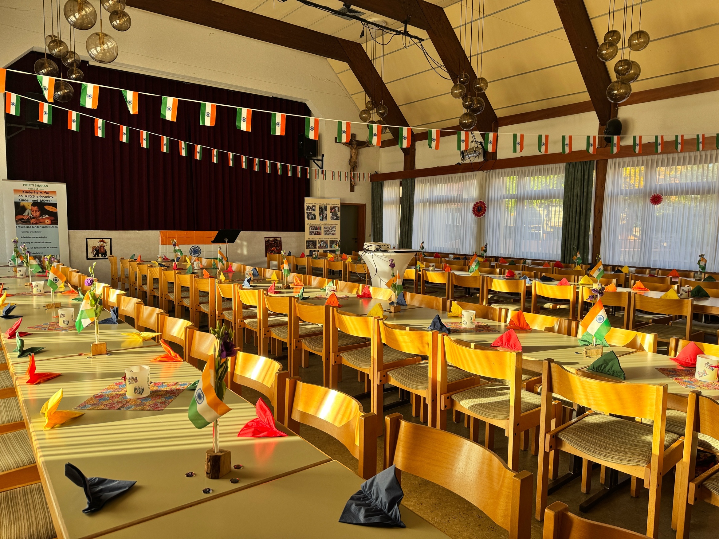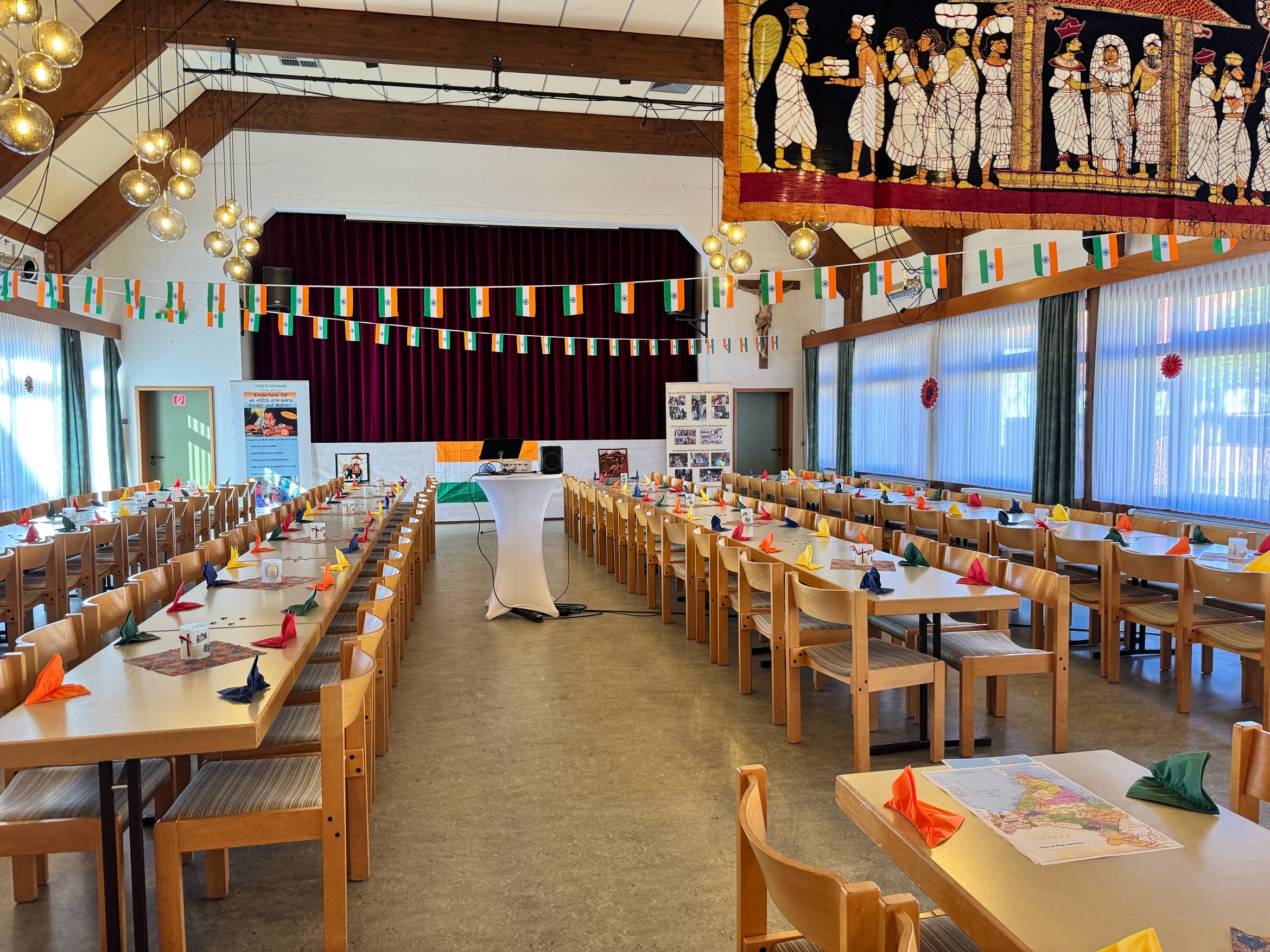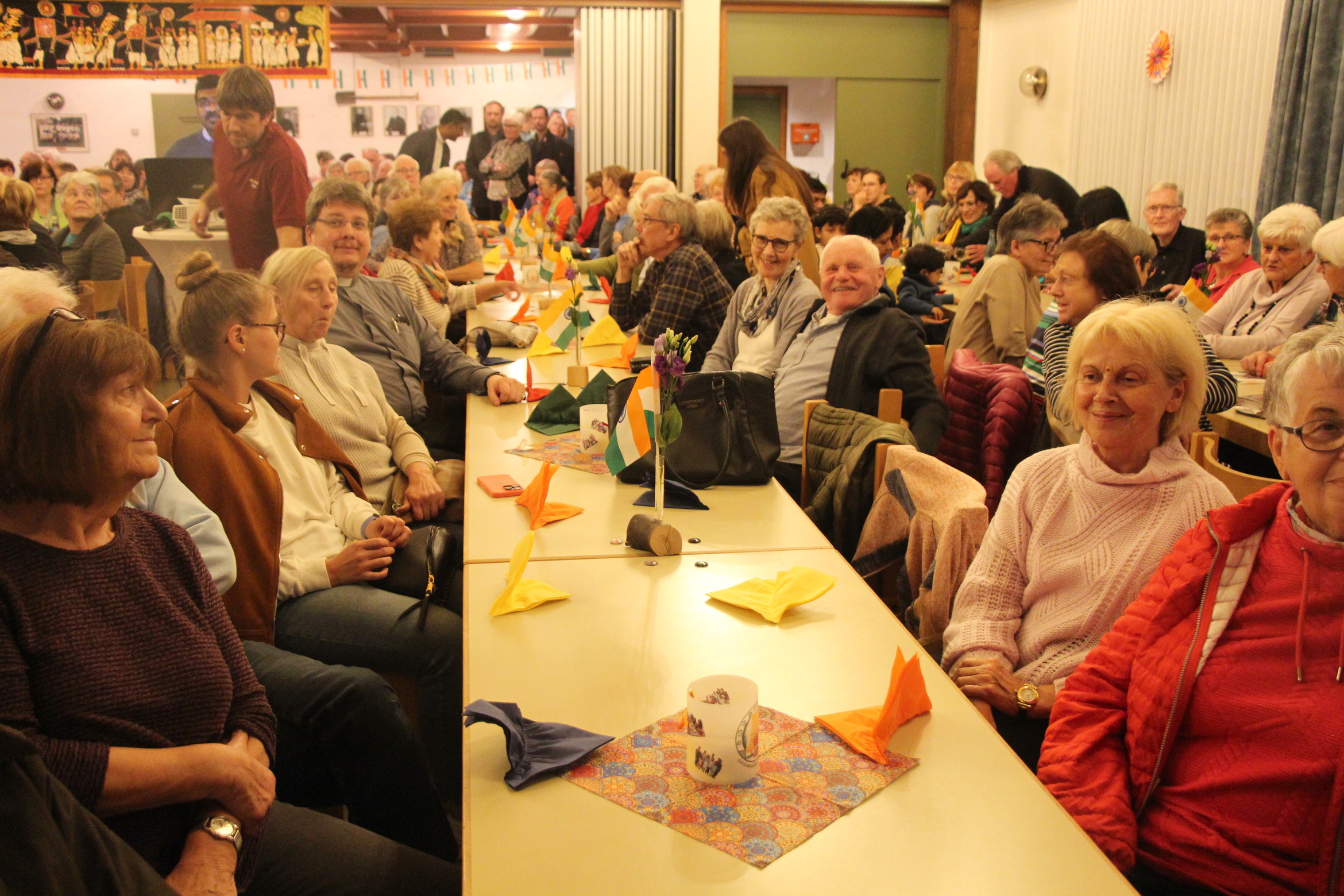 Nach der Stärkung wurde ein Film über Kaplan Napoleons Besuch in seiner Heimat gezeigt, der auf großes Interesse stieß. Ein letzter Tanz und abschließende Dankesworte rundeten den eindrucksvollen indisch-tamilischen Kulturabend ab. Nach dem Nachtsegen nutzten viele Teilnehmende die Möglichkeit, das Erlebte in Gesprächen nachklingen zu lassen.