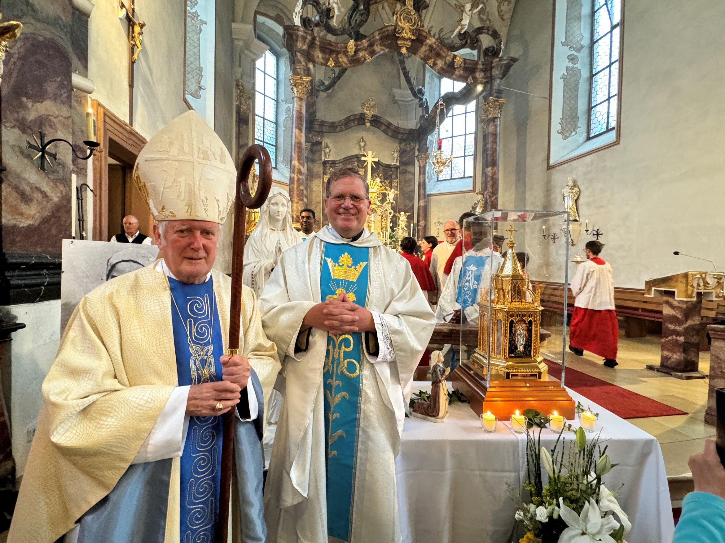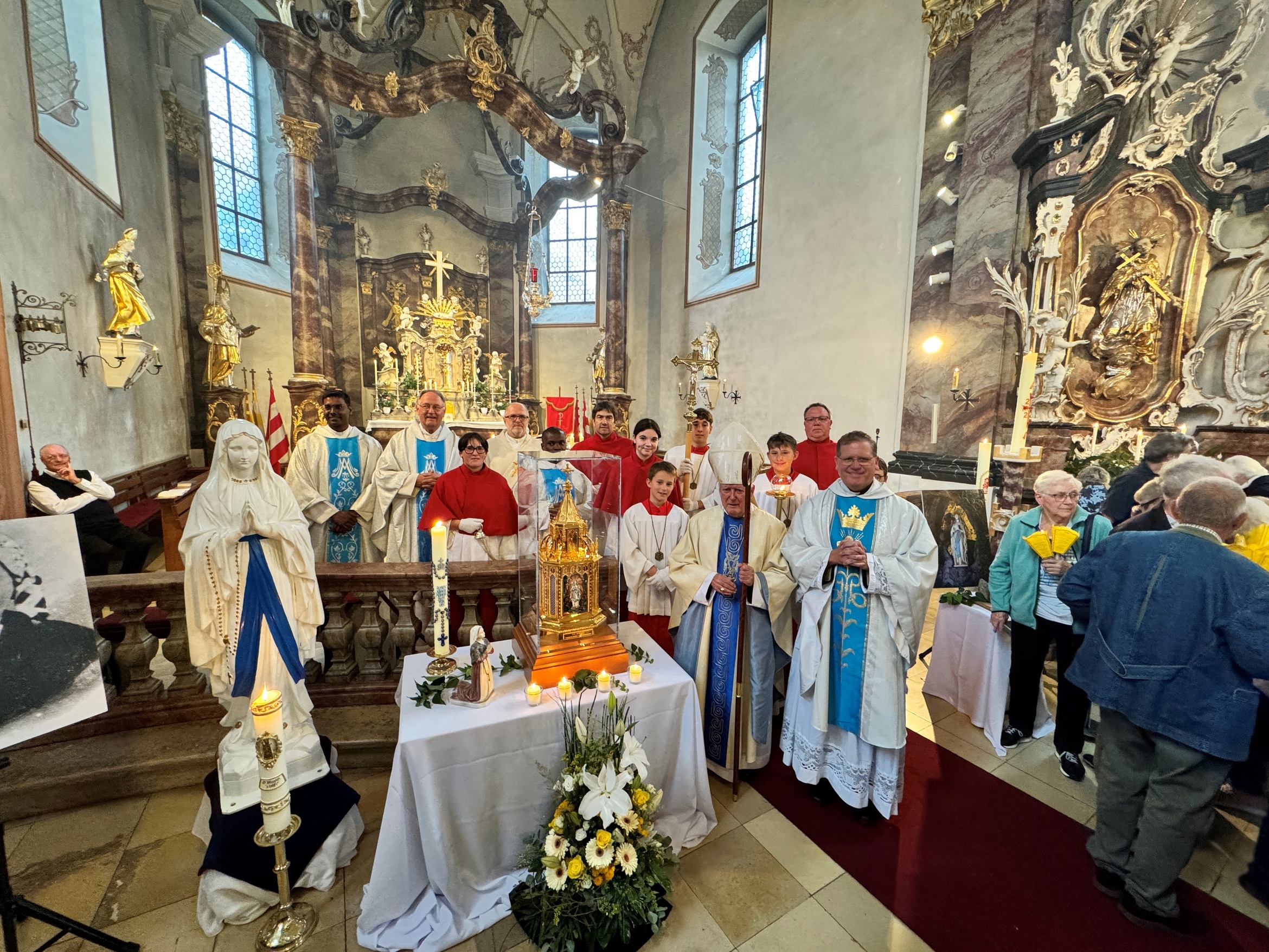 Am Ende der Eucharistiefeier ging Bischof Hofmann mit der barocken Monstranz durch die Kirche und spendete den Gläubigen den Segen, wie es täglich in Lourdes geschieht. Mit Gebeten der heiligen Bernadette fand eine Weihe an Maria statt. In der gedimmten Kirche leuchteten hunderte Kerzen. Viele Gläubige nutzten die Gelegenheit, die Reliquien zu verehren und eine Kerze sowie ein Fläschchen Wasser aus der Lourdesquelle mitzunehmen.