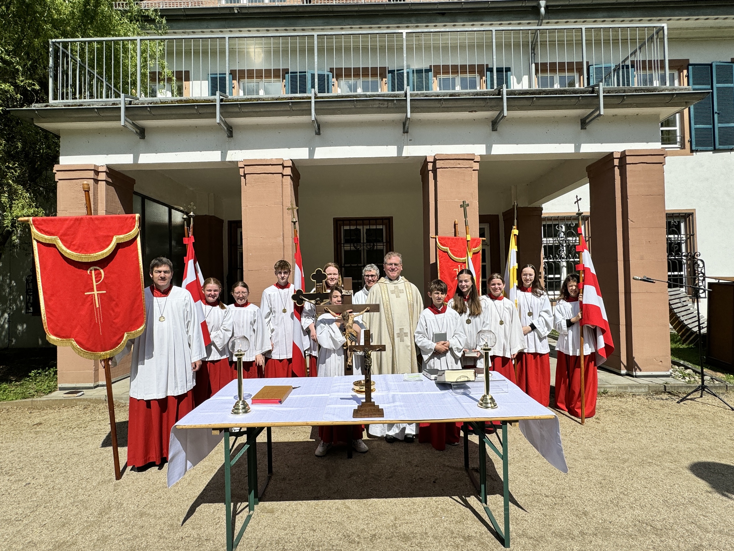 Im idyllischen Park des Krankenhauses Wasserlos fand vierzig Tage nach Ostern die traditionelle Festmesse zum Hochfest Christi Himmelfahrt statt. Zahlreiche Gläubige aus Alzenau, Wasserlos und Hörstein folgten der Einladung zu diesem besonderen Freiluftgottesdienst, darunter auch viele Ministranten. Musiker der Kolpingkapelle Alzenau und des Musikvereins Hörstein, die schöne Himmelfahrts- und Marienlieder spielten, verliehen der Eucharistiefeier eine besondere Atmosphäre.