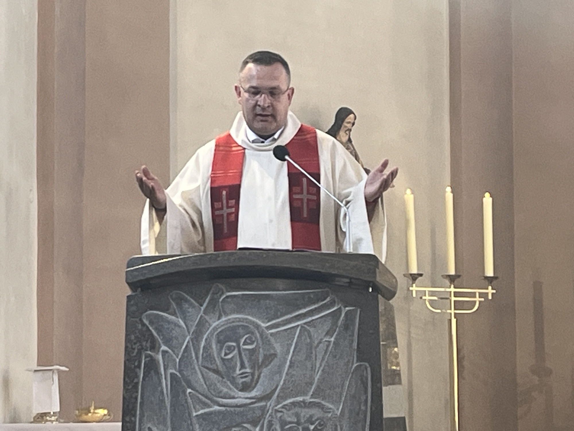 Dass sie für uns Christen ein großes Vorbild sein sollte, machte unser Herr Pfarrer Kowalski in seiner Predigt deutlich: Analog zu den fünf Fingern einer Hand gibt es fünf Bausteine, auf die sich das Christsein stützt: das Gebet, die Gemeinschaft, die Ehrlichkeit, die Vergebung und das Dienen. Die Heilige Margareta hat diese christlichen Grundsätze nicht nur befolgt, sie hat sie gelebt - und wir können es ihr gleichtun!