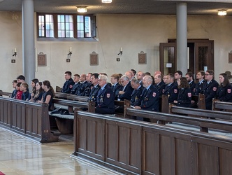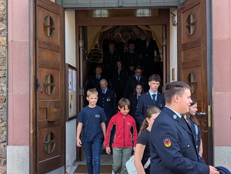 Gemeinsam mit den Mitgliedern der "Wehr" ist Pfarrer Disser feierlich in die Kirche eingezogen. Dabei führte selbstverständlich die Fahnenabordnung der Feuerwehr den Einzug an. Für die Messe wählte der Geistliche die Messtexte des Heiligen Bernhard von Clairvaux. In den Fürbitten und den Segen wurden die Feuerwehrmänner- und frauen besonders mit eingeschlossen und um besonderen Schutz und Bewahrung in ihrem verantwortungsvollen, zeitintensiven und oft auch gefährlichen Dienst gebetet. Pfarrer Disser erklärte am Ende der Messe die beiden wichtigen Heiligen Florian, der Patron der Feuerwehrleute und Bernhard von Clairvaux, den Hörsteiner Ortspatron. Er empfahl eine Fahrt besonders zum Hl. Florian. Scherzhaft fügte er noch hinzu, "vielleicht besonders für die Altersabteilung" was die Gemeinde zum schmunzeln und lächeln brachte.