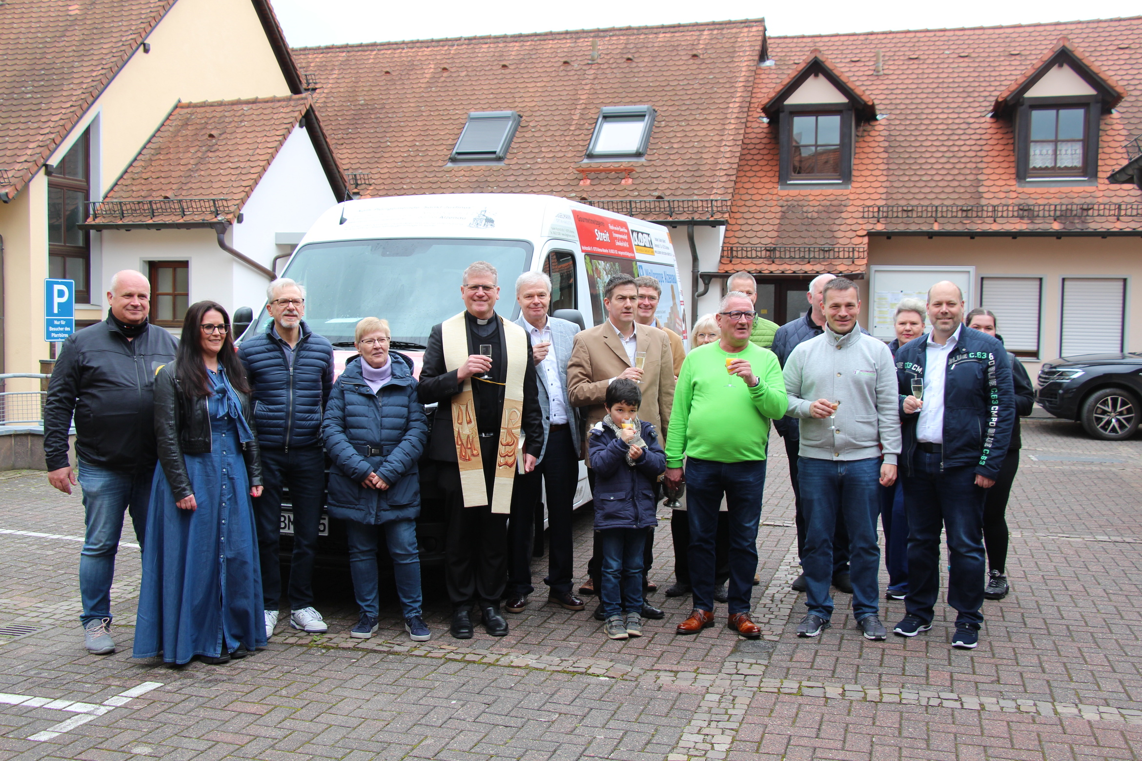 Im Rahmen einer kleinen Feier vor dem Maximilian-Kolbe-Haus wurde der neue Bus der Pfarrei St. Justinus seiner Bestimmung übergeben, feierlich eingeweiht und gesegnet. Gerhard Wurmnest, der Geschäftsführer von Brunner Mobil aus Gertringen in Baden-Württemberg, erläuterte in seinen Ausführungen den Verlauf der Neuanschaffung. Die zahlreichen Werbepartner, die mit ihrem finanziellen Beitrag das Projekt mitverwirklicht haben, wurden ebenfalls erwähnt.