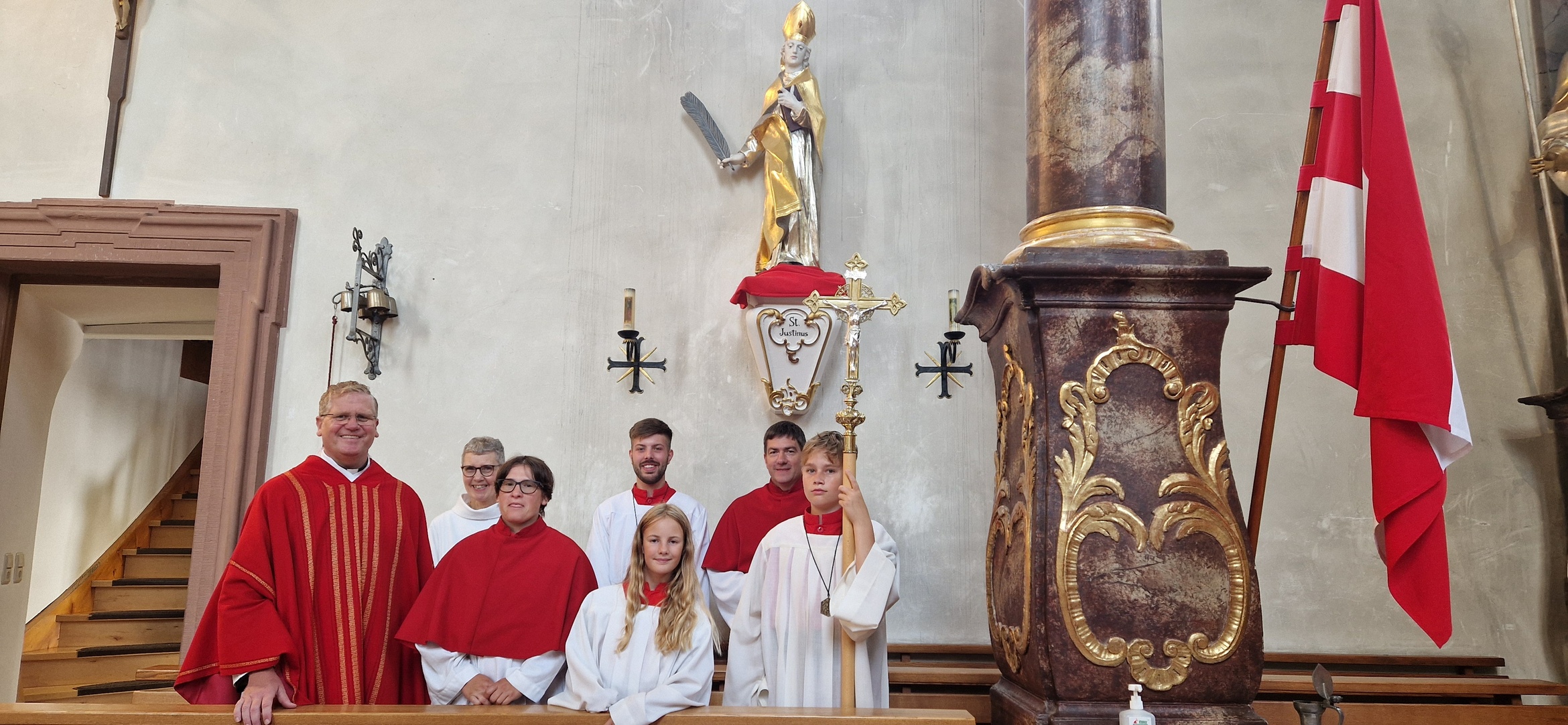 Mit einer feierlichen Sonntagsmesse feierte die Pfarrei St. Justinus Alzenau ihren Kirchenpatron, den heiligen Märtyrer Justinus, einen mutigen Verfechter des frühen Christentums. Die Pfarrkirche in Alzenau gehört zu den wenigen, die diesem Heiligen geweiht sind. Bereits im Jahr 834 brachte der Mainzer Erzbischof Otgar die Gebeine des Heiligen aus Rom mit, von denen ein Teil auch ins Benediktinerkloster Seligenstadt gelangte, dem die Pfarrei Alzenau damals angehörte. In seiner Predigt erinnerte der Stadtpfarrer an das vorbildhafte Leben und Wirken des Heiligen, der uns auch heute als Beispiel für Gottes- und Nächstenliebe dienen kann. Die frisch renovierte Figur des heiligen Justinus war am Festtag geschmückt.