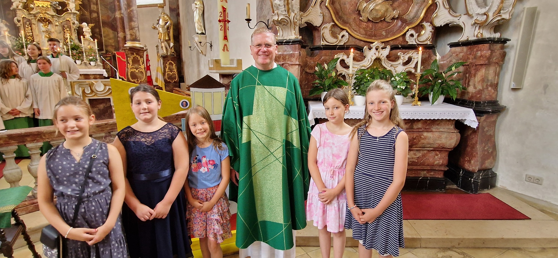 Im Rahmen einer feierlichen Sonntagsmesse wurden fünf neue Ministranten der Pfarrgemeinde St. Justinus Alzenau der Gemeinde vorgestellt und für ihre zukünftigen Aufgaben gesegnet. Die offizielle Einführung der neuen "Minis" wird zu einem späteren Zeitpunkt stattfinden. Stadtpfarrer Frank Mathiowetz dankte den neuen Messdienern für ihre Bereitschaft, diese wichtige Aufgabe zu übernehmen. In seiner Predigt ermutigte er die Gottesdienstbesucher, ihr Leben nach dem Evangelium zu gestalten und bei Jesus Ruhe und Gemeinschaft zu finden, insbesondere in der Feier der Eucharistie. Er zitierte das Evangelium: "Kommt und ruht ein wenig aus." Pfarrer Mathiowetz dankte allen Ministranten und Ministrantinnen für ihren engagierten Einsatz und treuen Dienst am Altar. Die Messe wurde von feierlicher Musik begleitet, gespielt auf der Klais-Orgel, die trotz der laufenden Renovierung noch einsatzbereit ist.