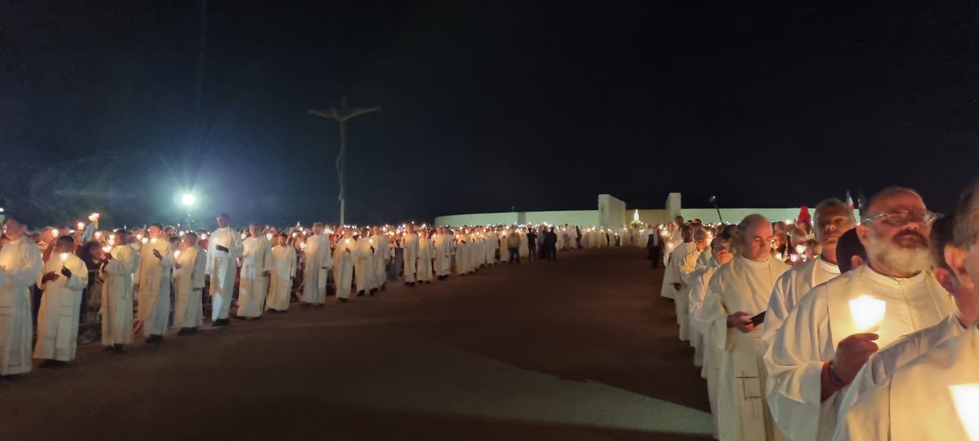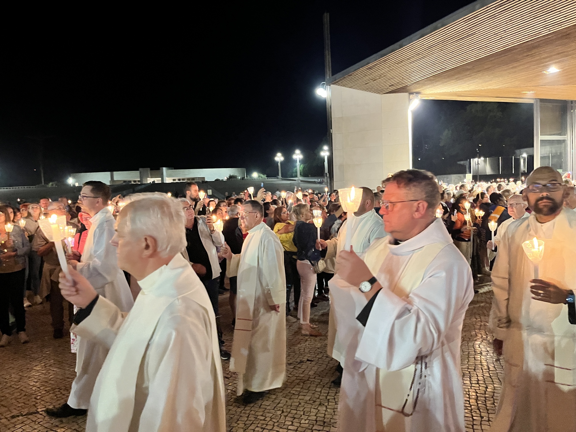 Bereits am ersten Abend und an allen folgenden Tagen der Wallfahrt durfte die Gruppe an einem internationalen Rosenkranzgebet und einer beeindruckenden Lichterprozession teilnehmen. Jeden Abend versammelten sich zehntausende Pilger aus der ganzen Welt, um singend und betend mit Kerzen in den Händen durch den "Heiligen Bezirk" zu ziehen. Diese ergreifende Atmosphäre erinnerte die Teilnehmer an die Worte Jesu: "Ich bin das Licht der Welt, wer mir nachfolgt wird nicht in der Finsternis gehen, sondern das Licht des Lebens haben."