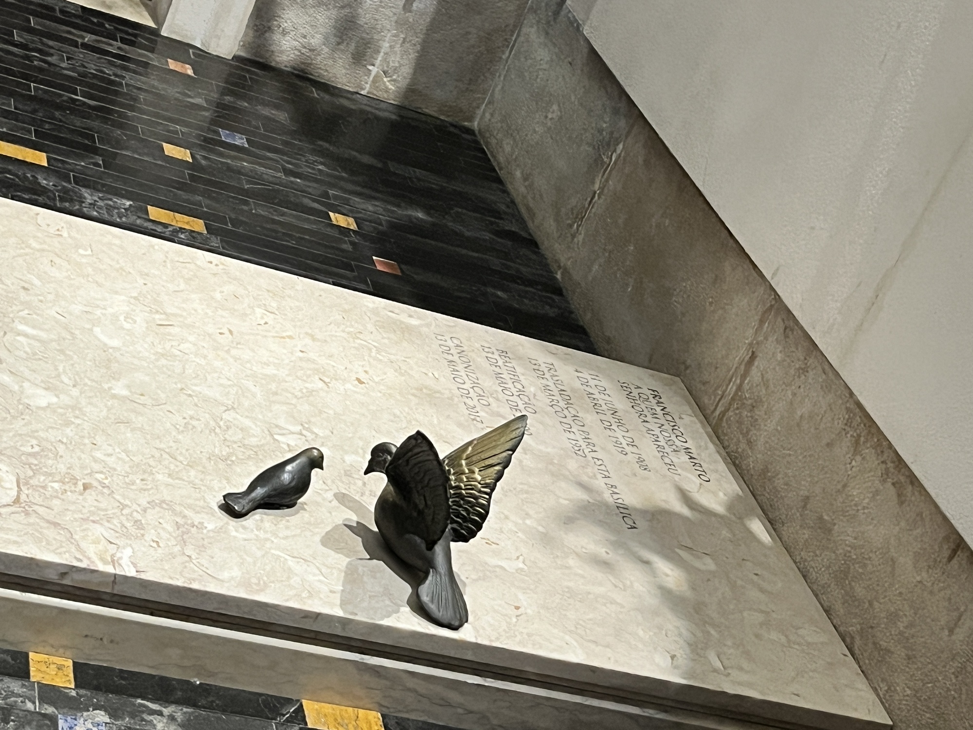 In der Rolle des "pilgernden Gottesvolks" begaben sich die Teilnehmer auf eine spirituelle Reise zu den heiligen Stätten des Glaubens. Die erste Etappe führte sie zu den Sehenswürdigkeiten des Wallfahrtsortes, darunter die prächtige Basilika mit den Gräbern der Heiligen Seherkinder. Ebenso beeindruckend waren die Stelle mit Teilen der Berliner Mauer und die lebensgroße Papstfigur.