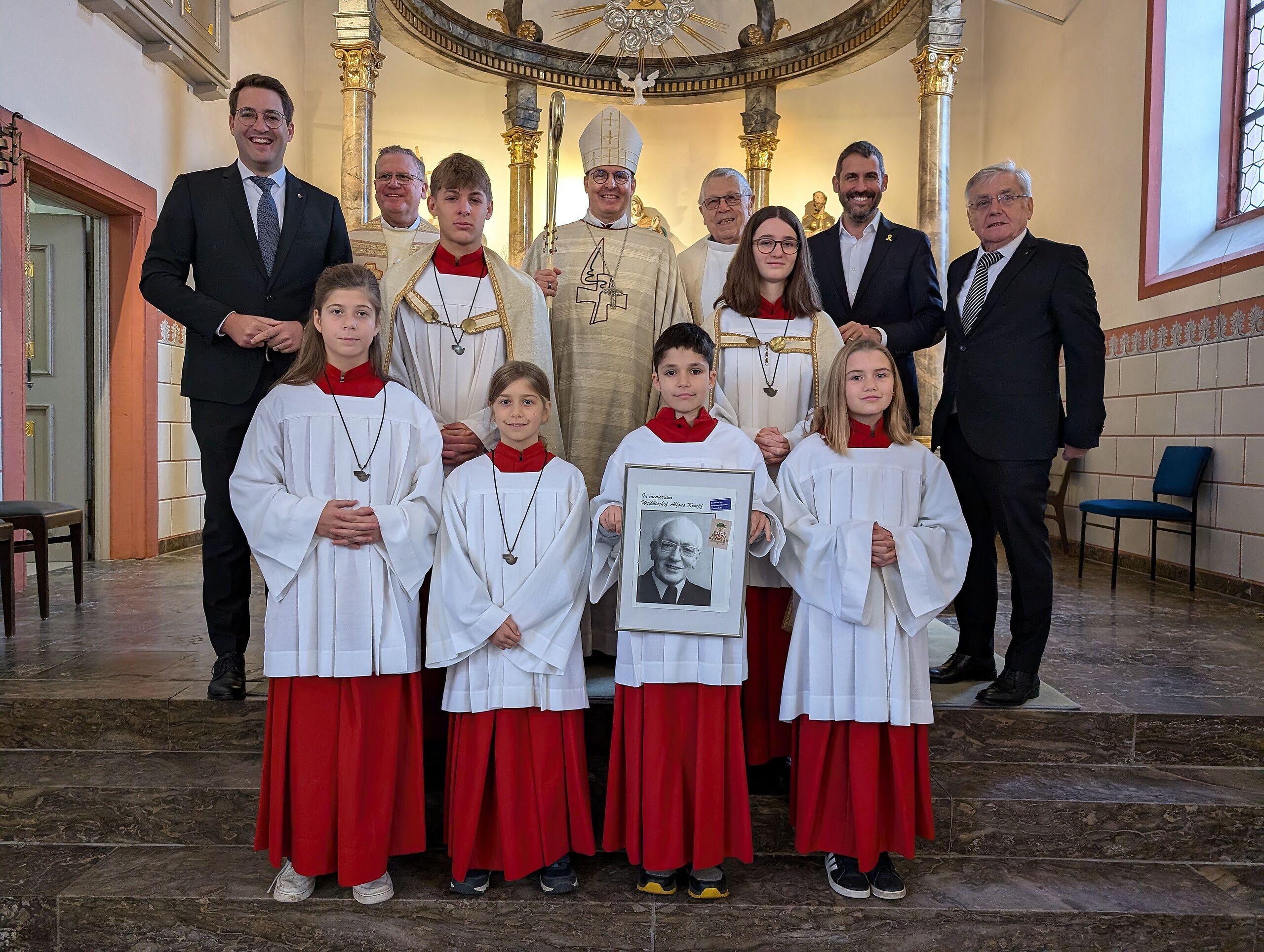 Die Albstädter erinnern in Dankbarkeit mit einer Gedenktafel in der Kirche an Alfons Kempf. Ein besonderes Augenmerk legten die Mitfeiernden auf den Bischofstab von Weihbischof Paul Reder. Er hat sich keinen neuen Bischofstab schmieden lassen, sondern hat aus dem Fundus in Würzburg jenen Bischofsstab übernommen, welchen Alfons Kempf von seiner Heimatgemeinde zur Bischofsweihe geschenkt bekam und damit nach 25 Jahren Albstadt besuchte.