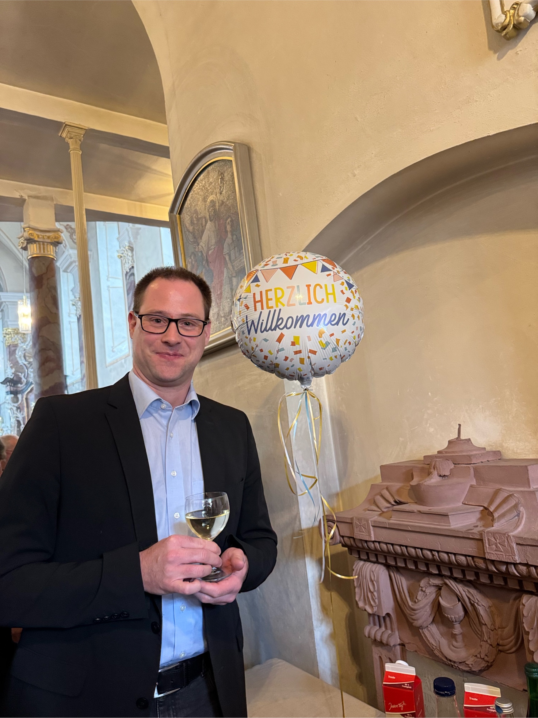 Bei einem anschließenden Stehempfang mit Wein und Weck nutzten viele Gottesdienstbesucher die Möglichkeit zum Austausch und den neuen Kantor persönlich zu begrüßen.