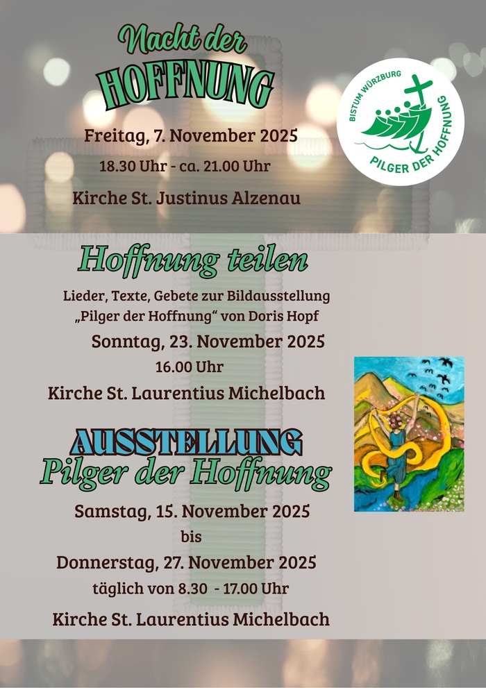 Die Ausstellung „Pilger der Hoffnung“ von Doris Hopf zeigt eindrucksvoll, wie Kunst den Weg des Glaubens und der Zuversicht begleiten kann. Entdecken Sie farbenfrohe, symbolstarke Bilder, die Hoffnung lebendig werden lassen.