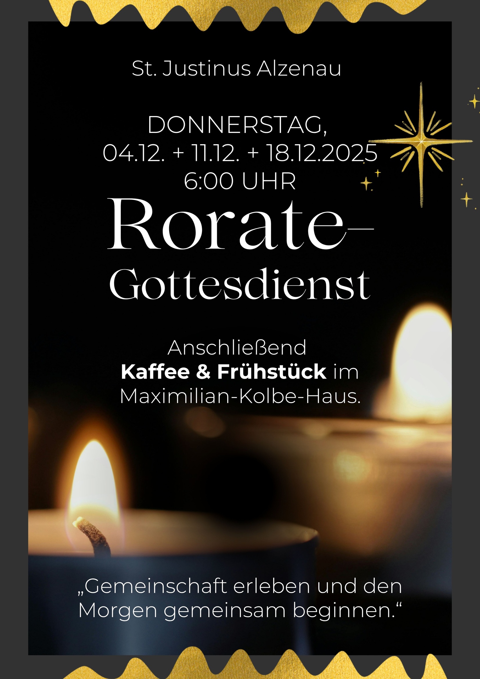 In der Adventszeit laden wir herzlich zu unseren Rorate-Messen in der Kirche St. Justinus ein – besondere Gottesdienste in der frühen Morgenstunde, die auf das Licht Christi und die kommende Weihnacht einstimmen.
