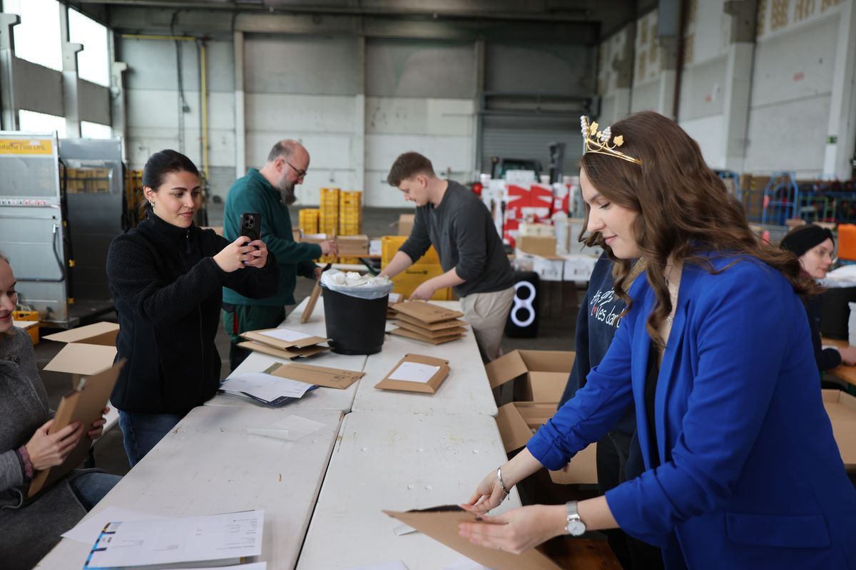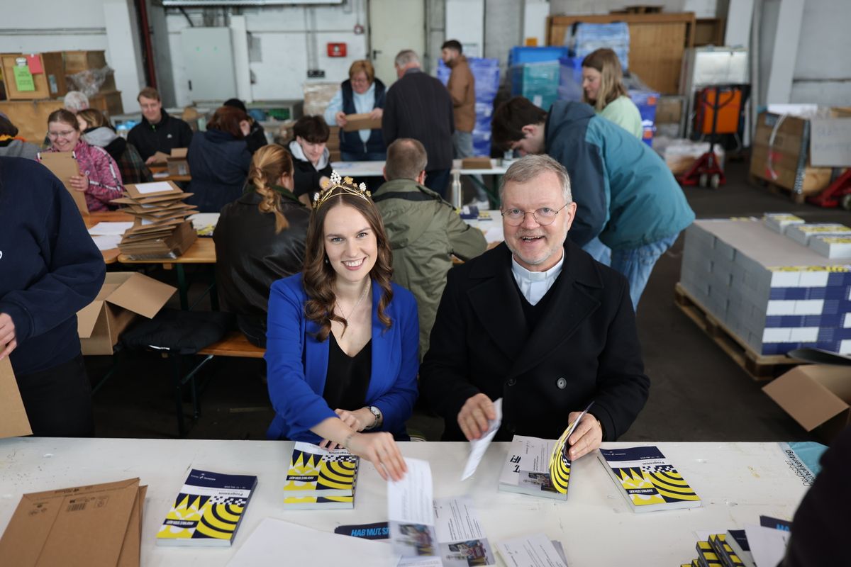 Gemeinsam mit weiteren 40 Personen aus der Katholikentags-Geschäftsstelle und ehrenamtlichen Helfenden sortierten sie in einer Lagerhalle am Würzburger Stadtrand je nach individueller Packliste Unterlagen wie Teilnehmerausweise, Einfahrgenehmigungen oder gedruckte Programmhefte zusammen und steckten diese in passende Umschläge oder Kartons. Anschließend verschlossen sie diese und versahen sie mit Anschrift und Frankierung. „Es geht gut voran. Ich gehe davon aus, dass bis Samstagabend alles auf dem Versandweg ist“, erklärte Pia Dusella vom Teilnahmeservice des Katholikentags. Nähere Informationen zum Katholikentag finden sich im Internet unter katholikentag.de sowie unter katholikentag.bistum-wuerzburg.de.