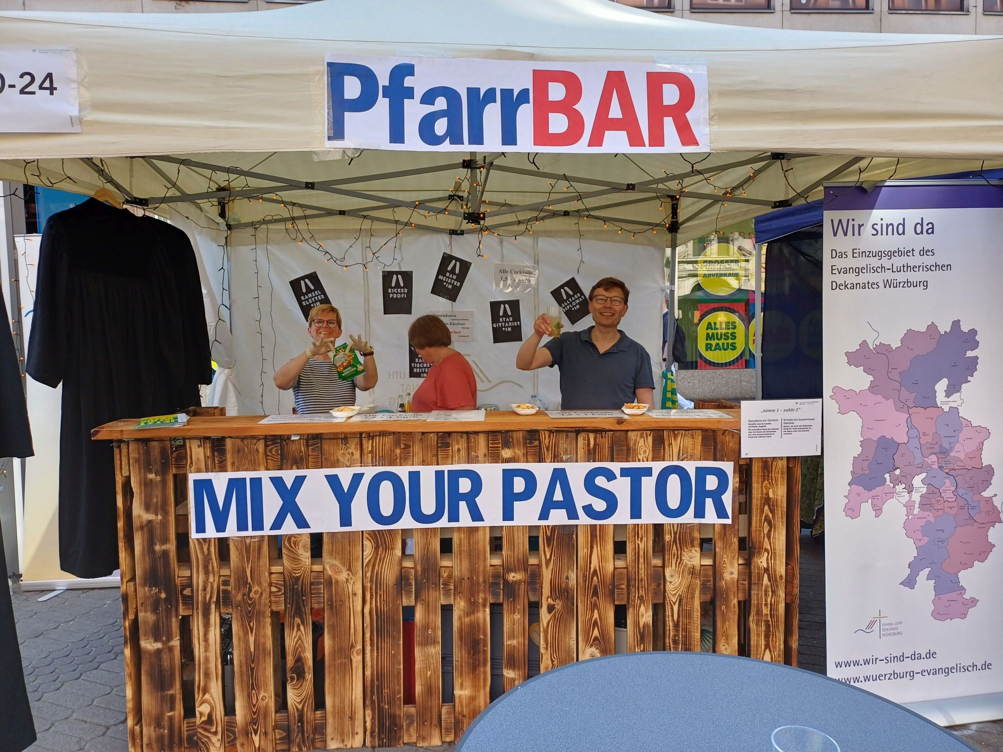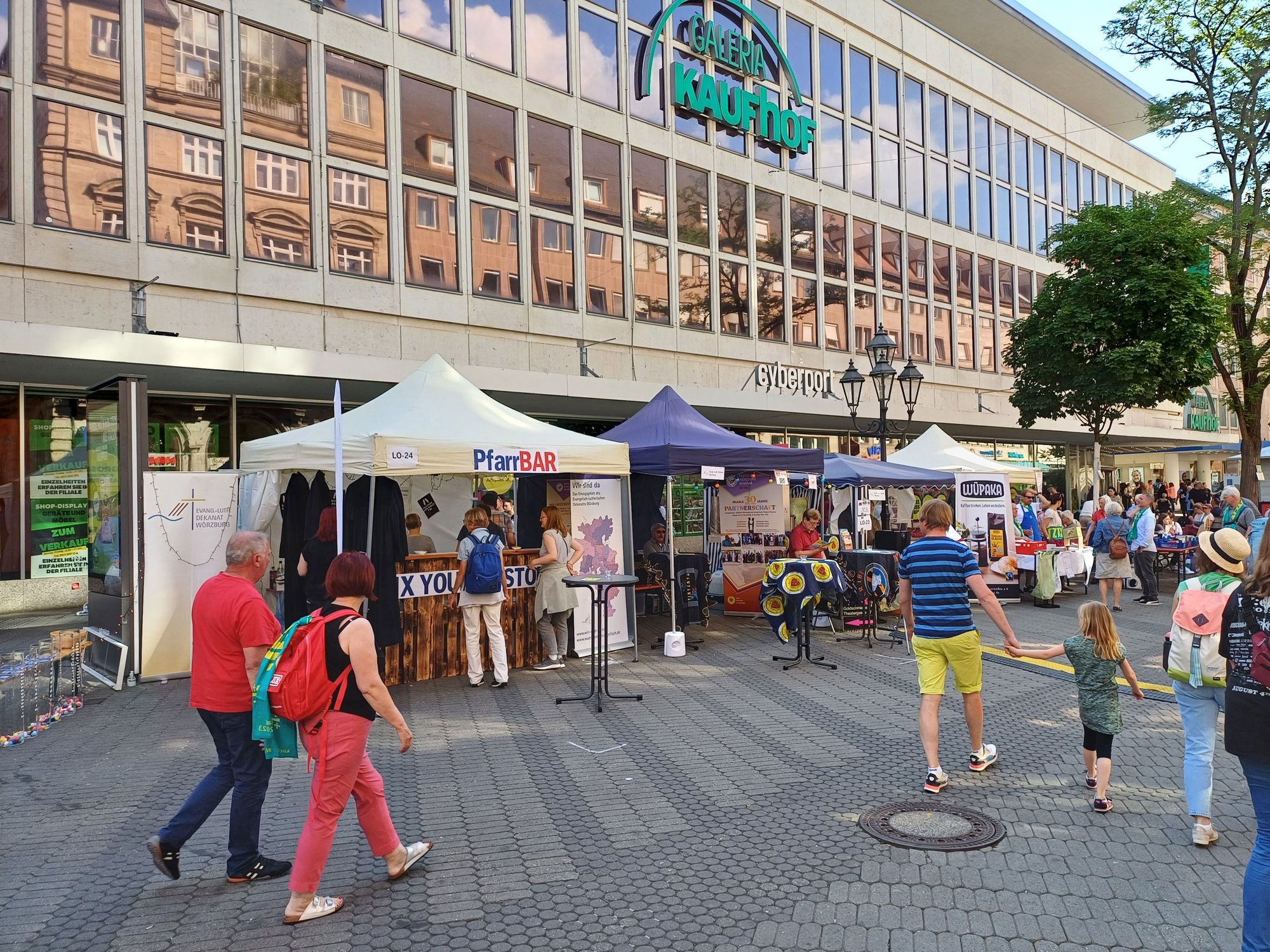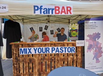 Damit möglichst viele Besucher und Besucherinnen des Katholikentags dazu motiviert werden, nicht den ganzen Abend über an einem Ort zu verweilen, gibt es eine Stempelaktion. Wer in der Abendbroschüre die Stempel aller neun Dekanate gesammelt hat, darf sich als Belohnung über ein Freigetränk nach Wahl freuen. „Das Stempelsammeln ist in unseren Augen ein guter Anlass, mit den Menschen aus den Dekanaten ins Gespräch zu kommen.“ Auch auf dem Weg zwischen den Ständen sei einiges geboten: Mitmach- und Infostände verschiedener Akteure aus dem Bistum wie der Katholischen Büchereifachstelle, dem Familienbund der Katholiken oder von „Theologie im Fernkurs“ freuen sich auf Besucherinnen und Besucher. Auch das evangelisch-lutherische Dekanat Würzburg beteilige sich mit einer Saftbar auf dem Sternplatz.