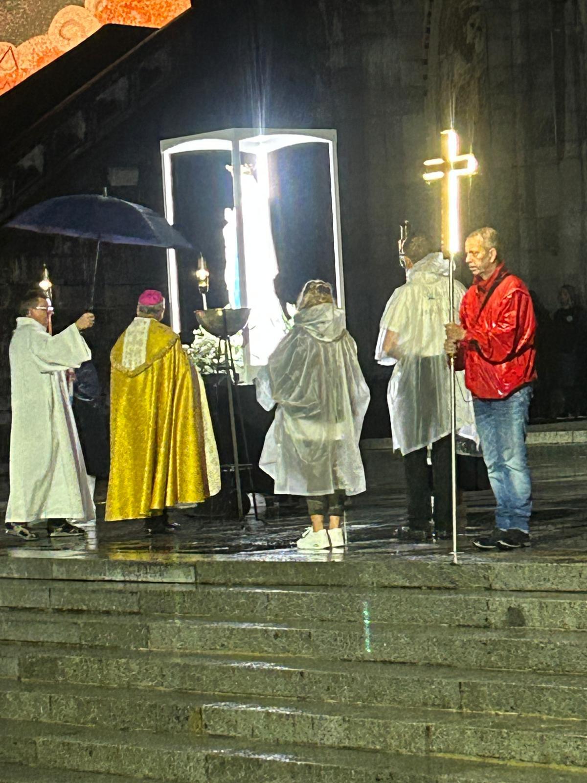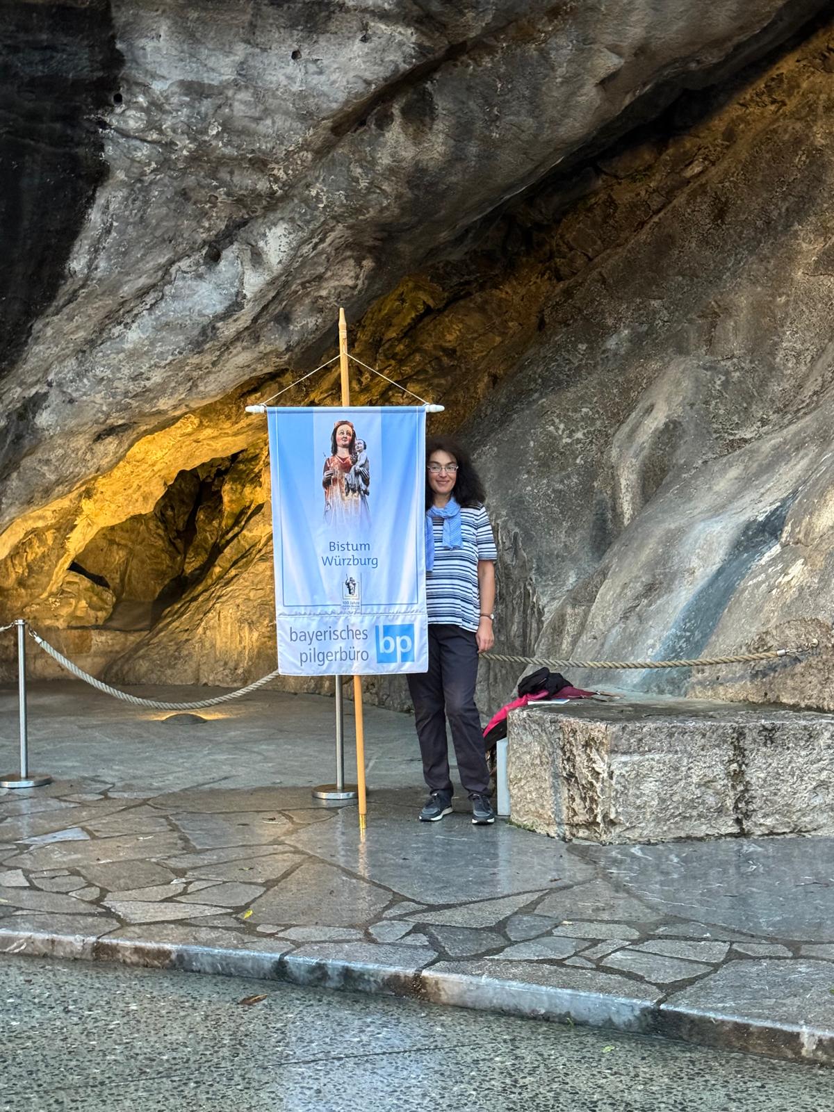 Am frühen Morgen des folgenden Tages versammelten sich die Wallfahrer an der Grotte von Massabielle – jenem Ort, an dem im Jahr 1858 die Gottesmutter Maria der damals vierzehnjährigen Bernadette Soubirous erschienen ist. Dort entspringt auch die Quelle, deren Wasser von jedem Lourdespilger getrunken und gerne mit nach Hause genommen wird. Jährlich kommen rund sechs Millionen Menschen aus aller Welt zu diesem französischen Wallfahrtsort.