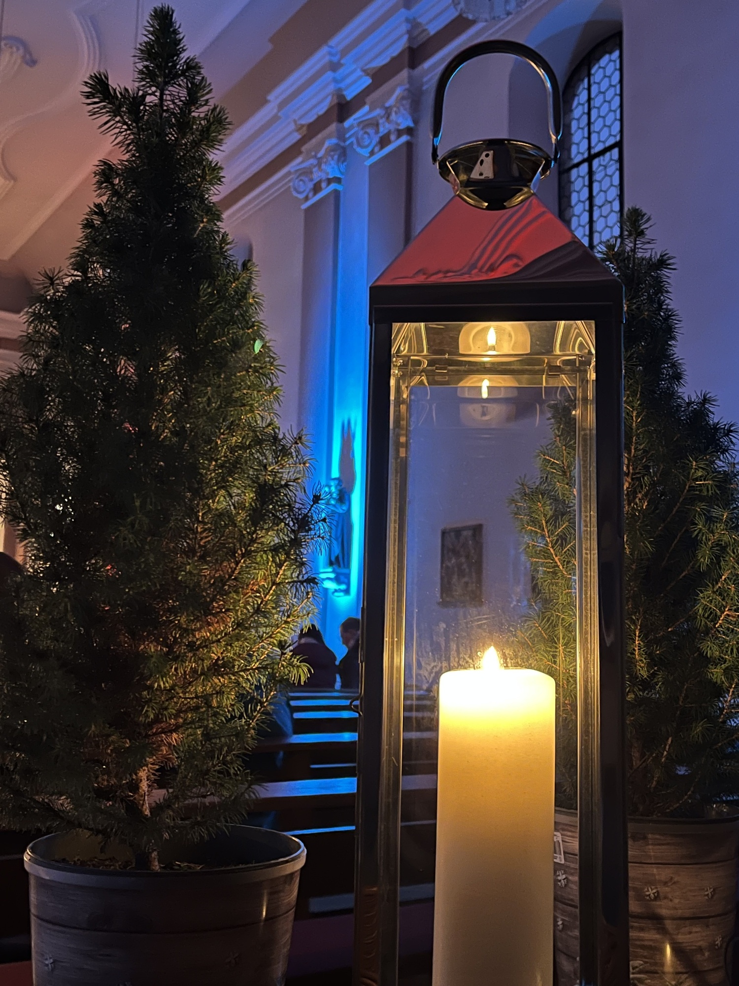Begleitet wurde die sangesfrohe Gemeinde von Christoph Seidel und Leon Hausmann an der frisch renovierten Orgel. Mit dem Zimbelstern, um den das Instrument im Zuge der Instandsetzung ergänzt wurde, konnte eine besonders festliche und weihnachtliche Stimmung entstehen.